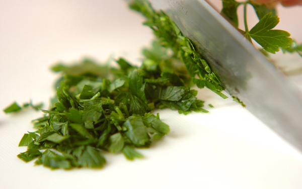 2、イタリアンパセリはみじん切りにする。