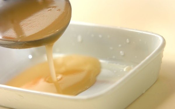 3、粗熱を取って、型に流し入れ、冷蔵庫で約1時間冷やしかためる。
