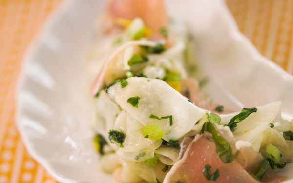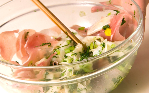 寒くなり、カブのおいしい季節がやってきました。さっぱりいただけるカブに、生ハムやユズを合わせた一品は、意外な組み合わせでありながら相性抜群!