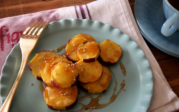 オリーブオイルを使えばオリーブの香りもうっすら。サツマイモのほのかな甘み、メープルの深み、そこにそれぞれの香りが重なります。シンプルでも美味しい大学芋に仕上がりますよ。