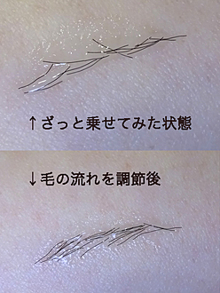 仕上がりはちょっと糊の後がテカりますが上からアイブロウパウダーなどを乗せると
