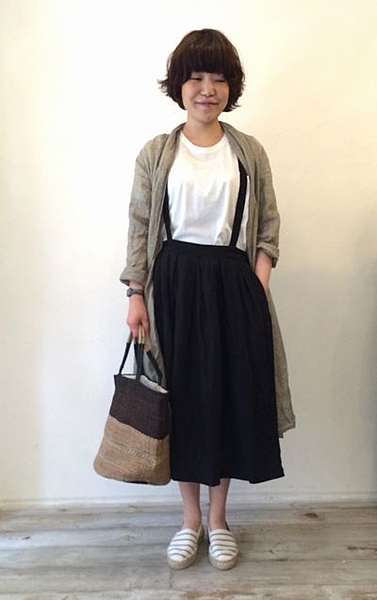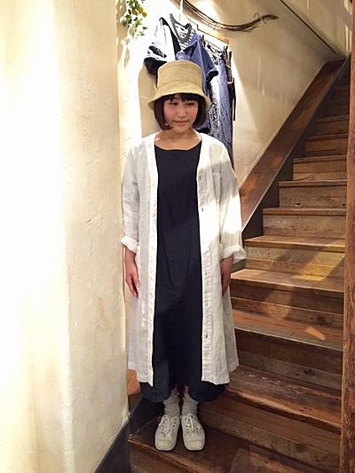 ネイビーやブラックのような暗い色でもリネン素材なら軽〜く着れる◎
