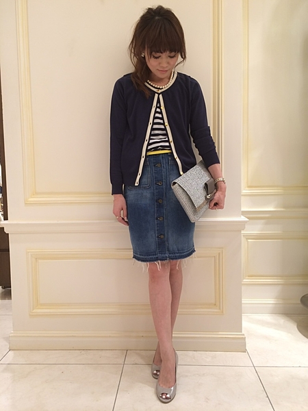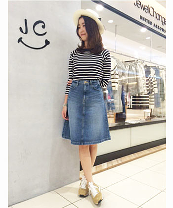 カジュアルになりがちなデニムスカートを女の子コーデに♡
