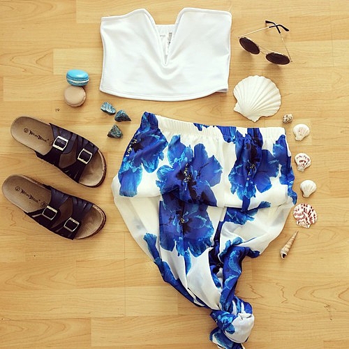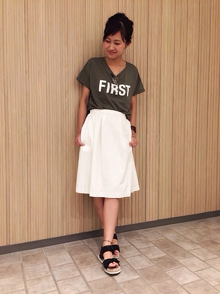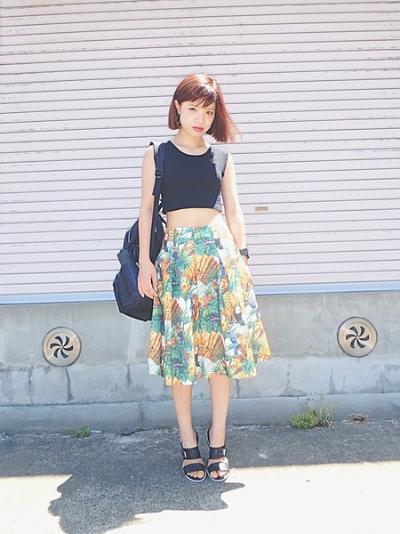 リゾート柄のスカートはシンプルなトップスと合わせるのが正解。