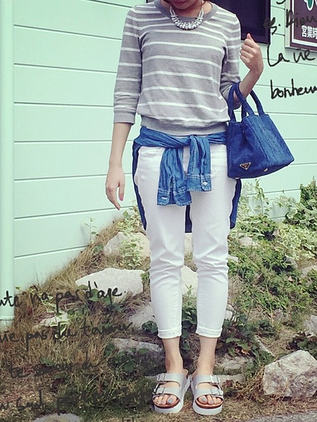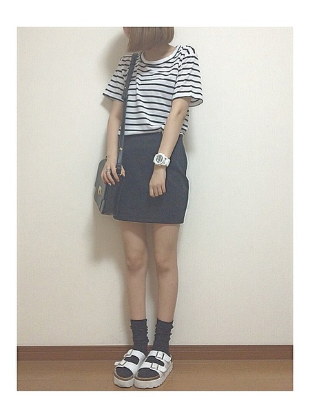 デニムタイトスカートにボーダーを合わせてカジュアルに◎