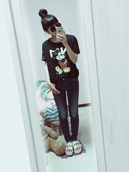 ミッキーのTシャツがキャッチーで可愛らしい。