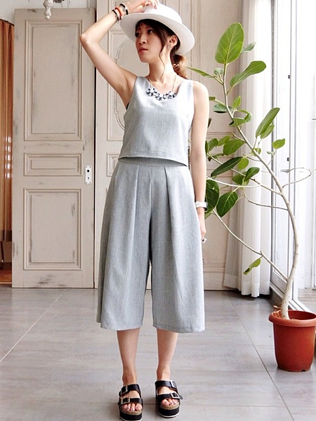 ガウチョのセットアップにコンフォートサンダルで時短の楽ちんコーディネート♡