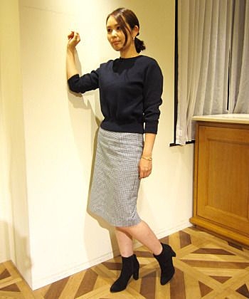 膝をすっぽり覆い隠すような丈感がお上品♪