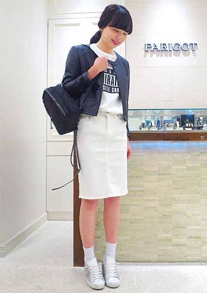 真っ白なスカートって皺が目立ちやすいから記事感と素材にはこだわりたい!