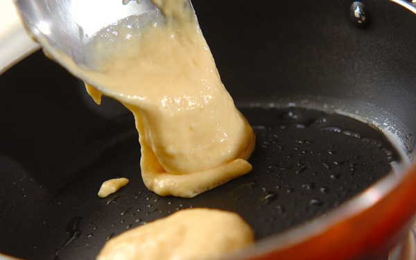 いろいろと応用が利くホットケーキミックスですが、生地に白玉粉を加えると、もっちもちのどら焼きの皮ができちゃうのです!