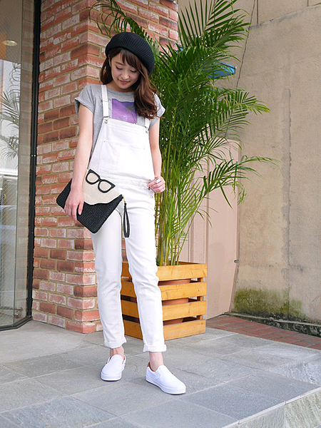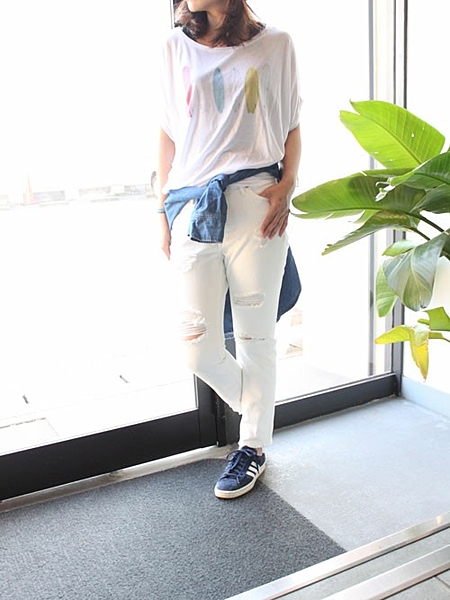 カジュアルなホワイトコーデにもスリッポンは大活躍。