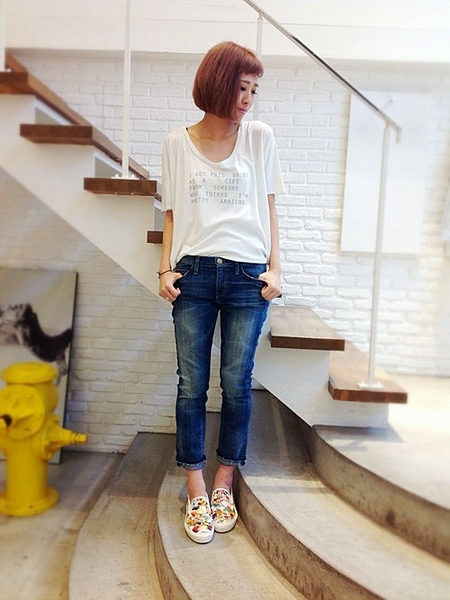花柄スリッポンはゆるっとしたトップスに合わせてカジュアルだけど女の子らしいコーデに。