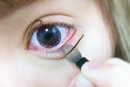 目頭の赤の丸の中:キラキラ系白のシャドウ