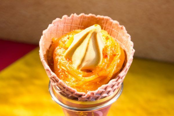 一般的なコーンとは少し色が違うのは、安納芋ソフトの味に合わせているから。
