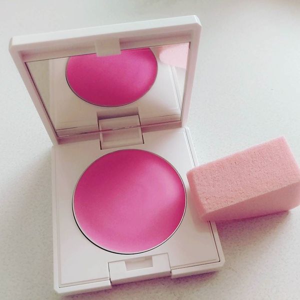 ネイルのようなデザインのチークポリッシュは、見た目も色も可愛い。ぽんぽんと筆でのせてから、指でひろげます。少量で色づくので、コスパも発色もいい万能アイテムです♡