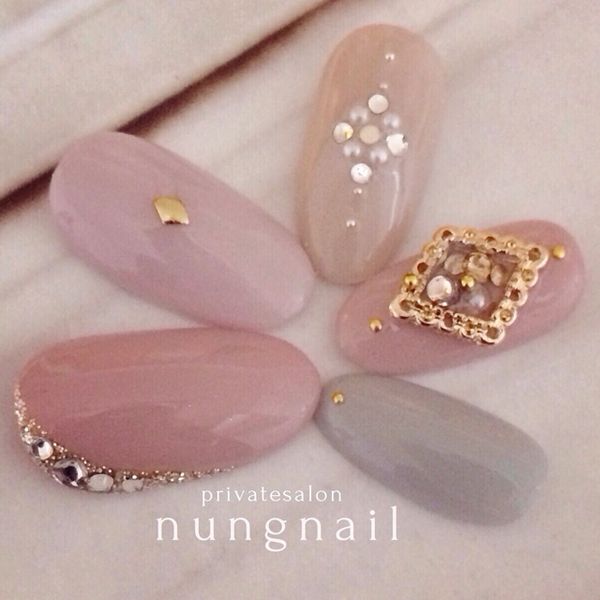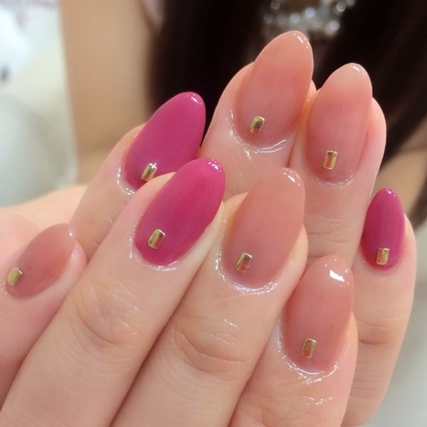2つのピンクを使っ、ゴールドスタッズをアクセントに。