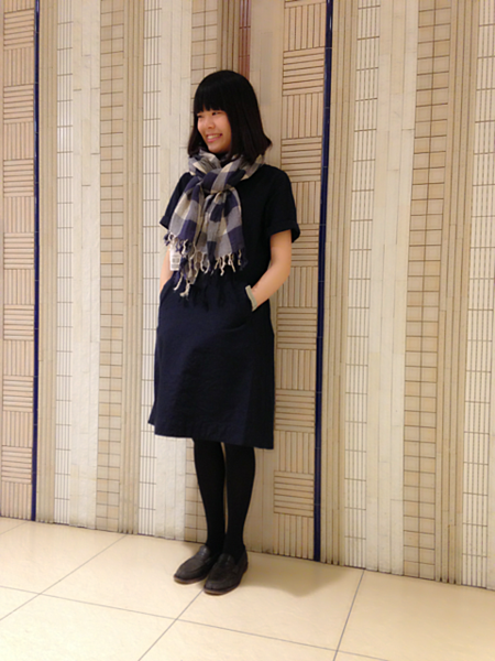 フロントにポケットの付いたビッグシルエットのワンピース。