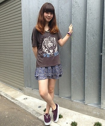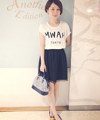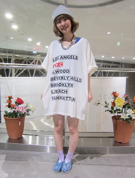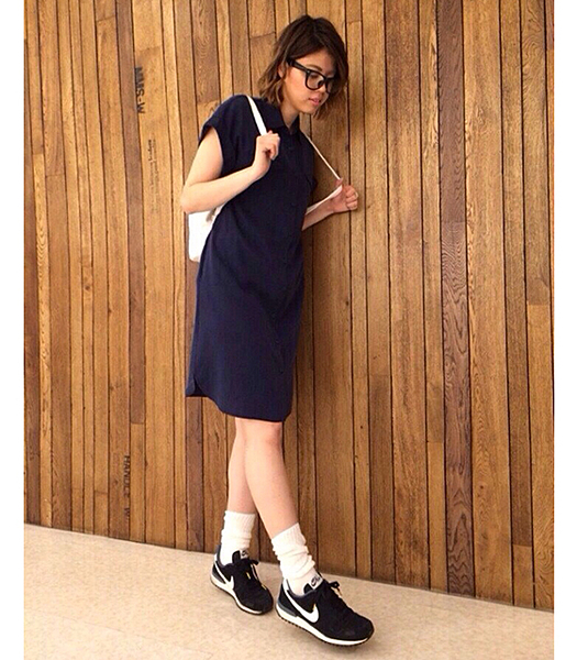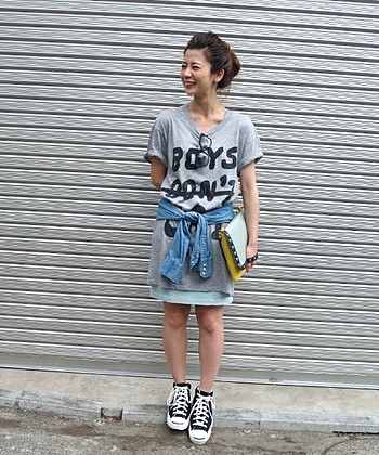 ロゴが入っているだけでとっても砕けた印象になるTシャツワンピ。