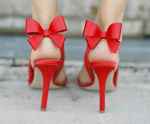 大きなリボンをあしらったアンクルデザインは、トレンドのクロップド丈ボトムとも好相性に決まります。