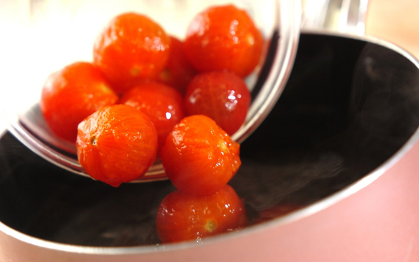 プチトマトは湯むきしておく。