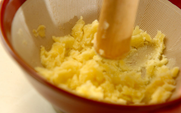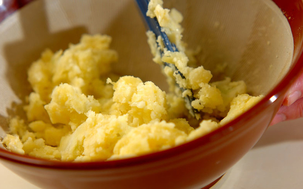 茹でたてのホクホクのジャガイモをすりつぶして、マヨネーズやバターで調味するだけで、肉料理の付け合わせにも、ワインのおつまみにも。