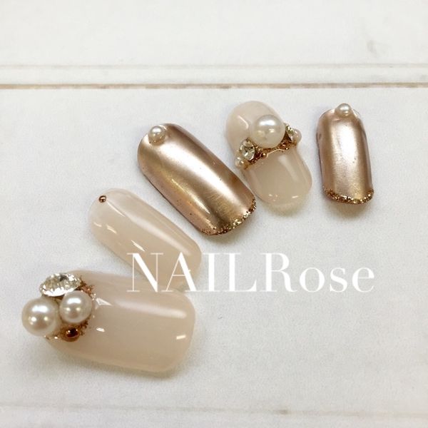 肌なじみの良いカラーを使って、パールやストーンなどでビジューアートもとっても素敵です。