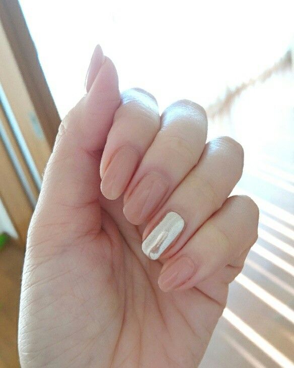 ベージュネイルにワンポイントでミラーネイルを入れると