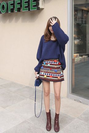 エスニック柄なスカートは、主張しすぎず、程よく個性を出せる便利な一枚。