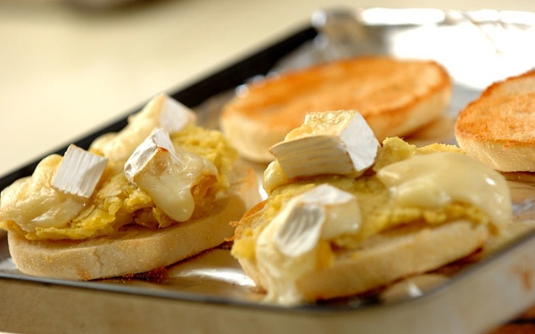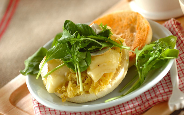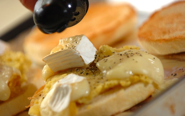 1、焼き芋は皮をむき、フォークの背でつぶす。カマンベールチーズは6等分に切る。イングリッシュマフィンは厚みを半分に切る。