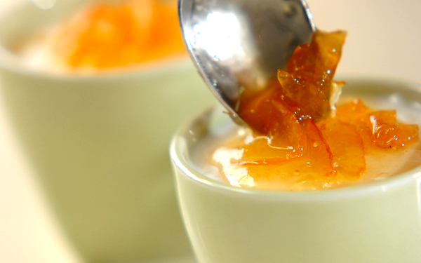 バットに流し入れて、冷やしかたまったら、スプーンで器に盛り分け、ユズソースをかけてもいいですね。牛乳を低脂肪乳や豆乳に変えたアレンジもおいしそうです。