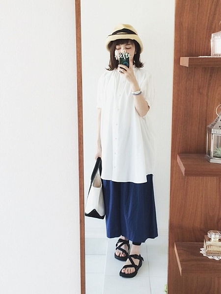 シンプルなシャツワンピや