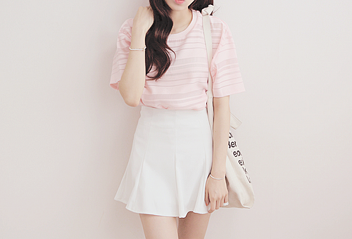 ホワイトは単色デザイン。ストライプはクレリック襟がポイントです。