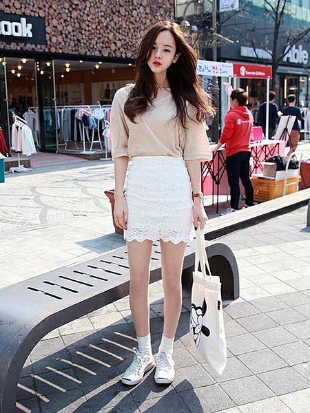 総レースの華やかなデザインで、スタイルをランクUPさせるスカート。脚を程良く覆うレングスながらも、タイトなシルエットで重たいイメージになる事なくスッキリと穿きこなせます。生地の透け感を活かした裾のラインが女らしさを高めるポイント。