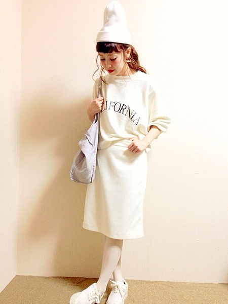 綺麗なホワイトコーデにこそ赤いアクセントを。