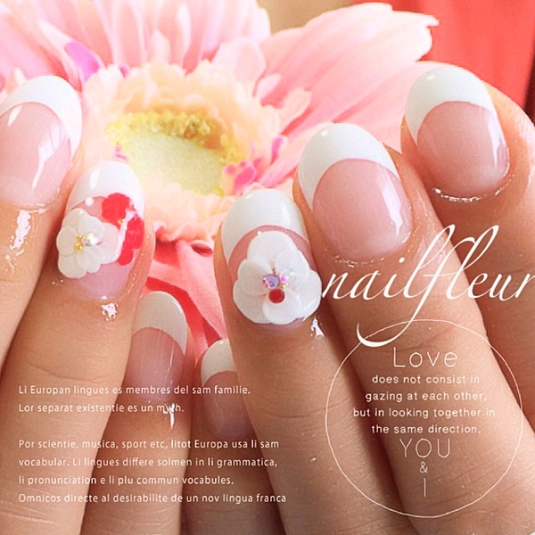 王道白フレンチ×白いお花で清楚で可憐な指先に