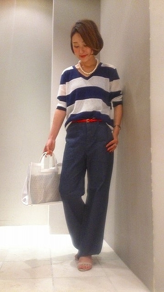 ベルトを入れるだけでかなり差し色に。