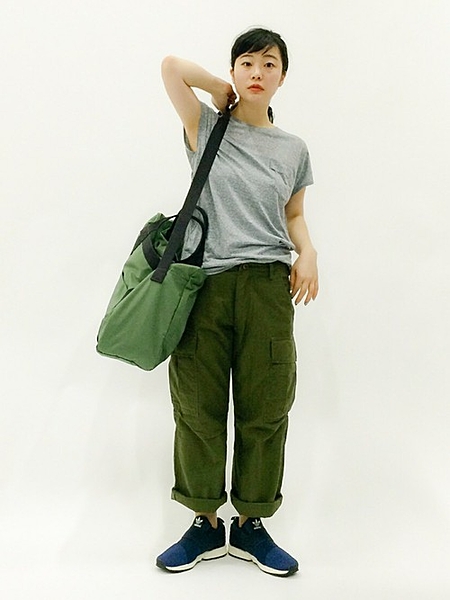 SLIP ONを主役に他はシンプルな色合いでまとめたコーデ。