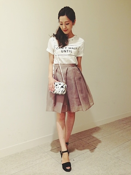 "白Tシャツ+膝丈スカート"で抜け感コーデを楽しむ♭
