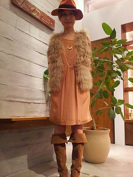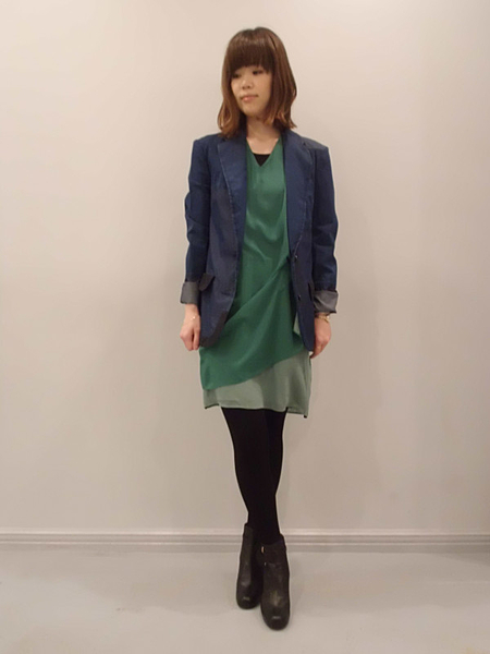 重ね着レイヤード風でボディラインを意識した着こなしを。