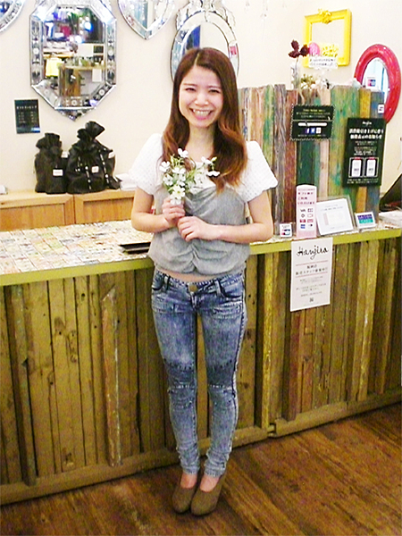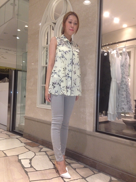 白地にとても可愛らしい花柄がプリントされたスキニーパンツです。