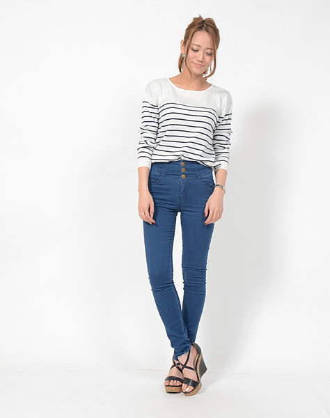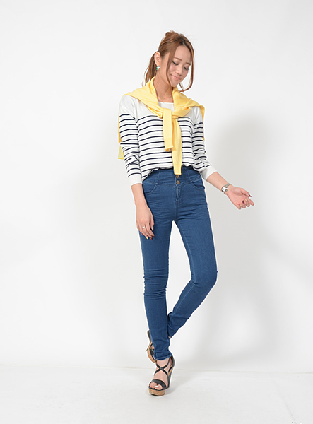 ストレッチがきいたハイウェストタイプのスキニーパンツです。