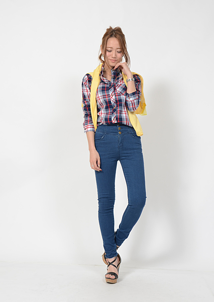 きれいなラインを作れるハイウェストスキニーパンツは大人気アイテムのひとつ。