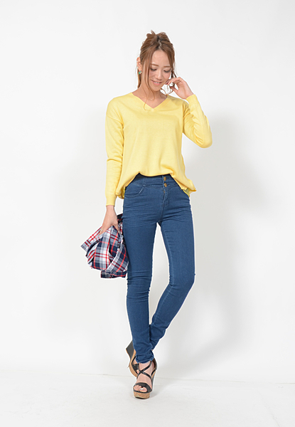 きれいな色づかいでスキニーパンツに合わせると、大人なカジュアルスタイルが完成します。
